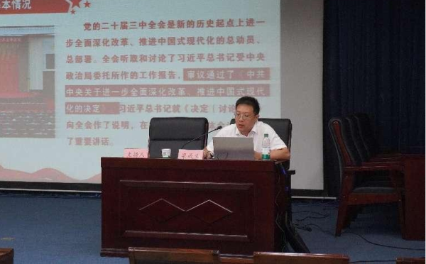 9月4日,經(jīng)開集團舉辦學習貫徹黨的二十屆三中全會精神專題宣講報告會。市委宣講團成員、市委黨校教研部主任、副教授梁成義作專題宣講。集團黨委副書記、總經(jīng)理張姝娜主持報告會并講話。