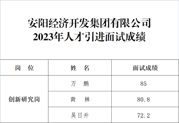 安陽經(jīng)濟開發(fā)集團有限公司2023年人才引進面試成績公示