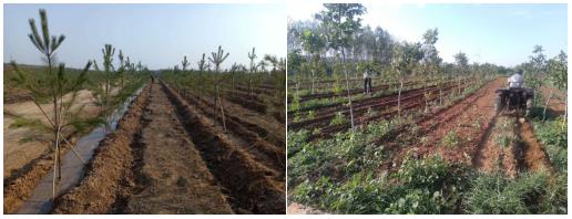 養(yǎng)護期的主要任務(wù)是澆水、除草、打藥及除蘗,養(yǎng)護期工作對新造林的成材極為重要,尤其前兩年的養(yǎng)護對人工林的整體成活率起著決定性作用。