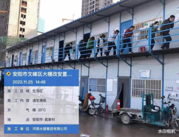 11月25日,組織施工單位開展了消防安全教育培訓(xùn),并在營區(qū)內(nèi)組織消防應(yīng)急演練、逃生演練,對營區(qū)內(nèi)工人進(jìn)行消防安全教育,宣貫滅火器正確使用方法,應(yīng)對突發(fā)事件如何正確逃生,認(rèn)真做好防范工作。